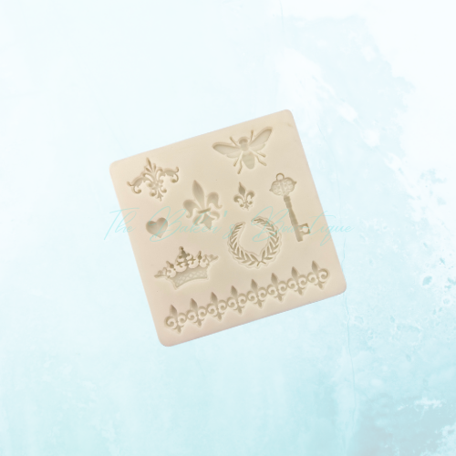Bring a touch of elegance to your bakes with our Royal Accents Silicone Mold! Perfect for cakes, cupcakes, cookies, and more, this versatile mold features regal designs including crowns, keys, laurels, fleur-de-lis, and more. Create intricate fondant, chocolate, candy, or gum paste decorations that instantly add a majestic flair to your treats.