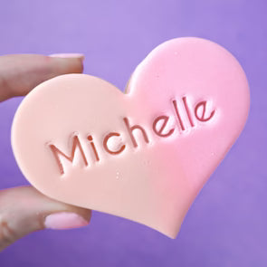 With SWEETSTAMP by AmyCakes, you can easily emboss your message or name and then paint.